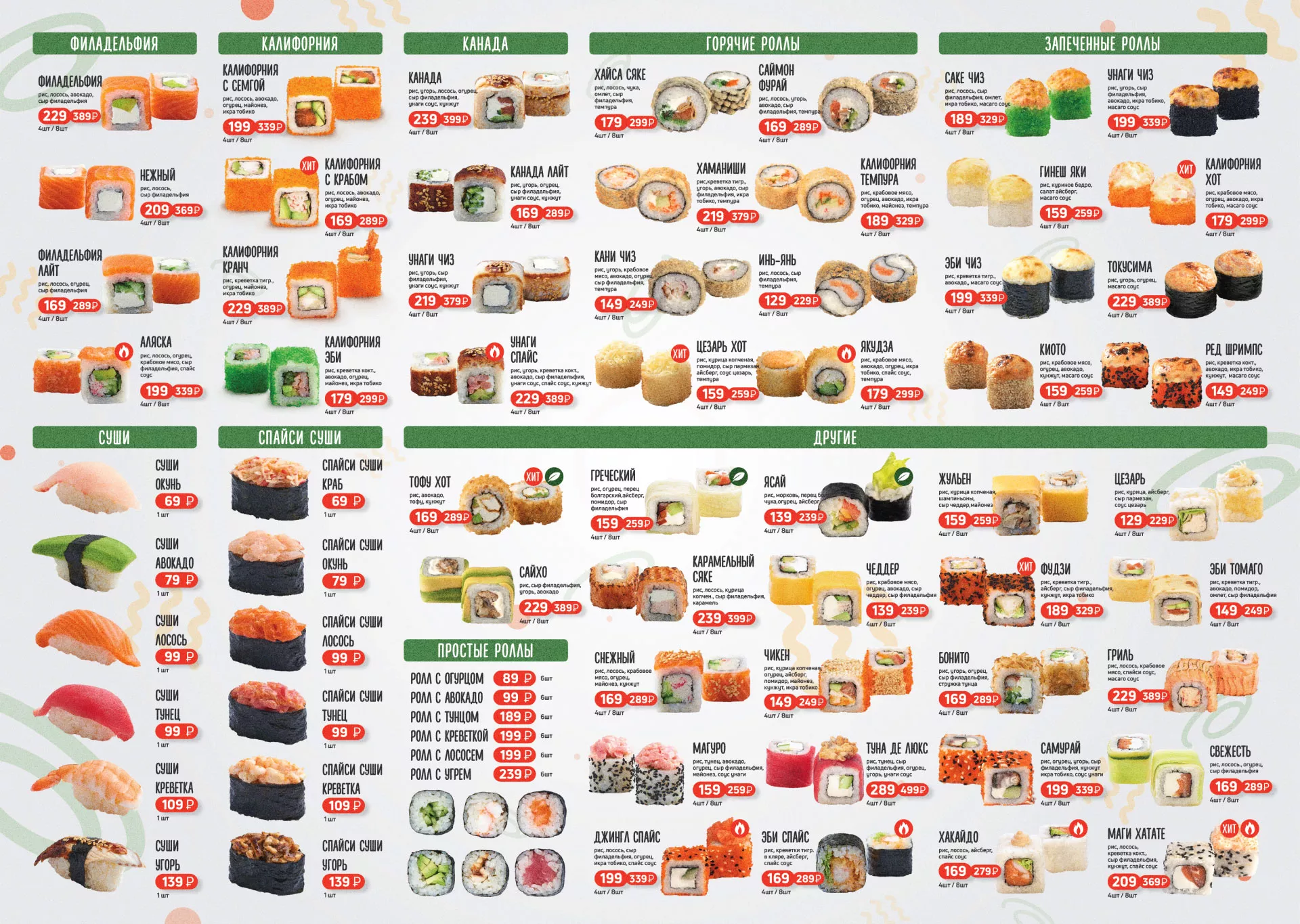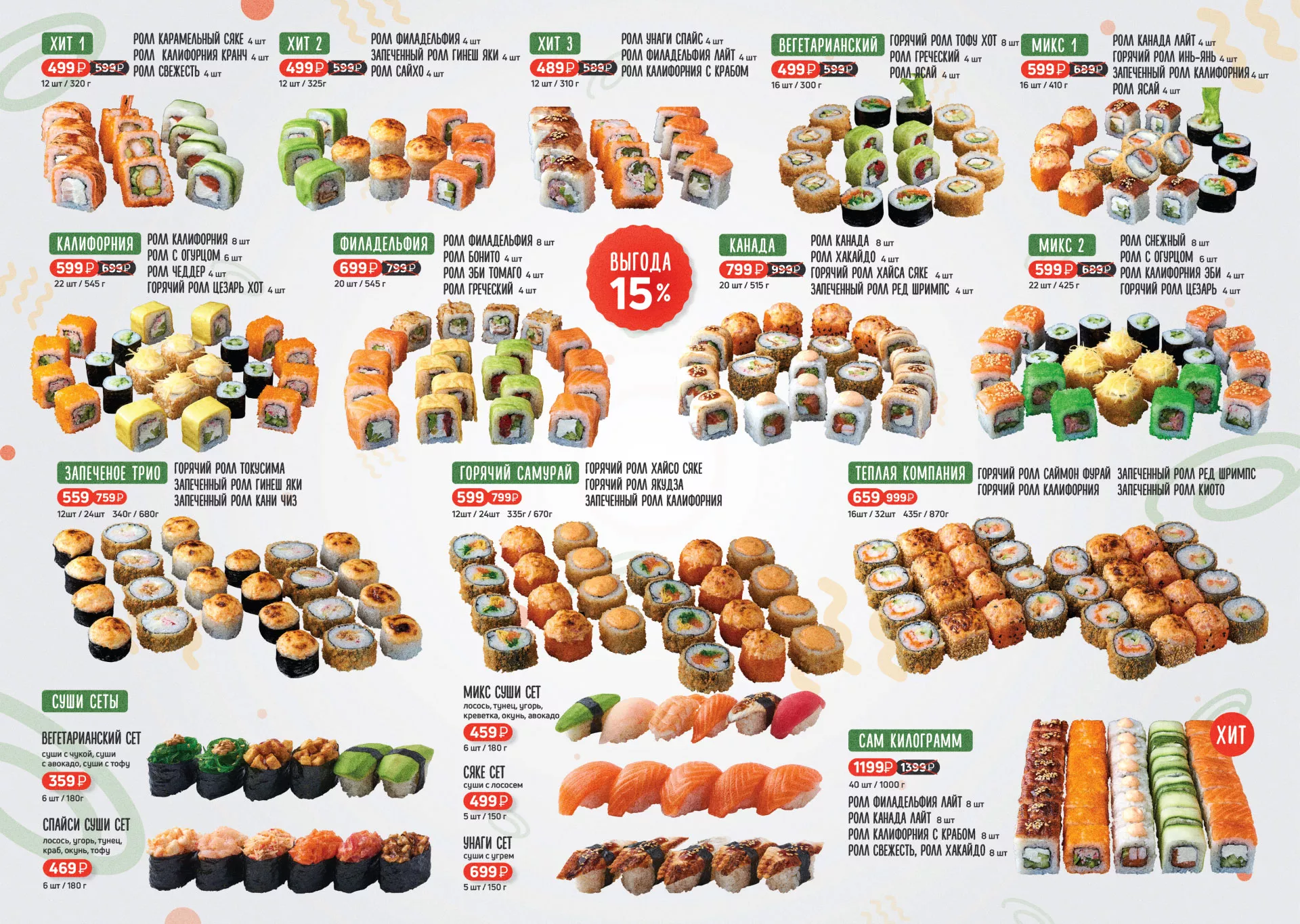 Оформление меню суши-бара «Roll Wok Club» в Котельниково