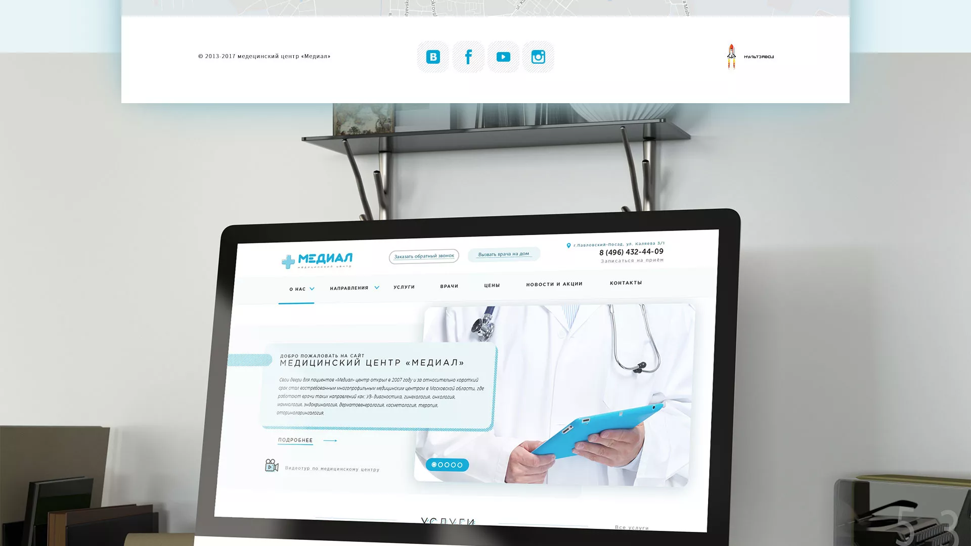 Сайт медцентра «Медиал» в Котельниково является «лицом» учреждения, презентует его с лучших сторон, доступно информирует об оказываемых услугах. Он легкий в навигации и использовании. На таком сайте должно быть просто узнать о врачах, услугах, записаться на прием всем возрастным категориям, от 16 до 60 лет. Это должен быть современный, функциональный и эстетически приятный сайт. В рамках создания сайта для медицинского центра компания «Мультзавод» в Котельниково ориентируется именно на эту задачу.